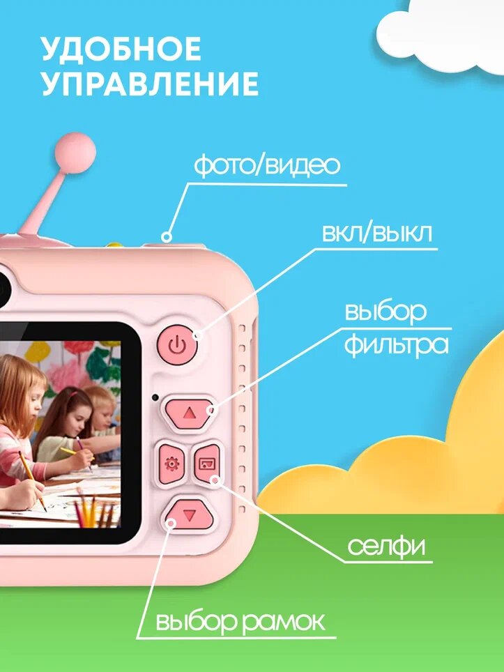 Детский цифровой фотоаппарат "Улитка", оптический зум 2,8x, розовый информация: