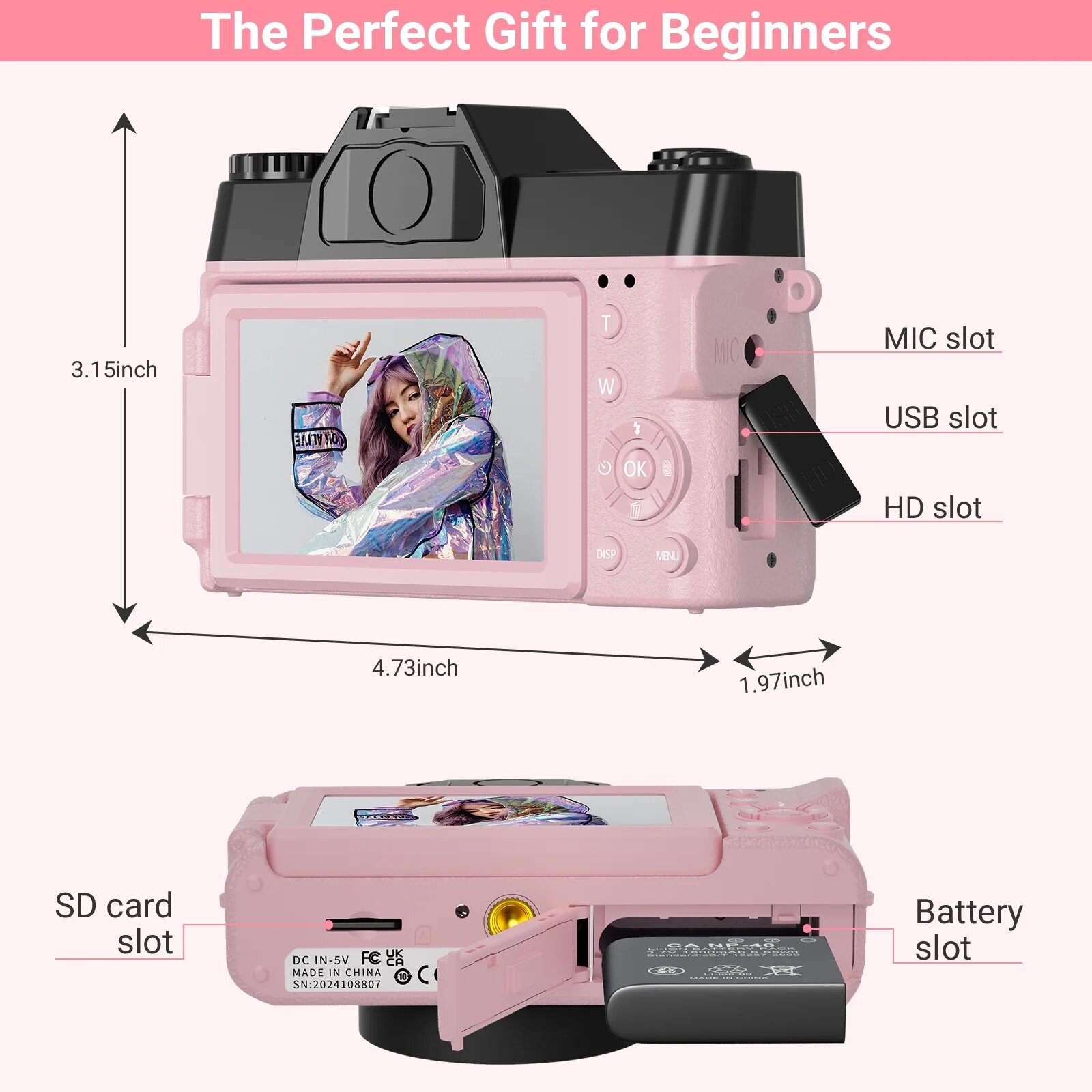 Отзывы на Цифровая камера для фотосъемки 4K 56MP WiFi Vlogging Camera для YouTube 3'180° Flip Screen 16X Digital Zoom 52mm Lens 2