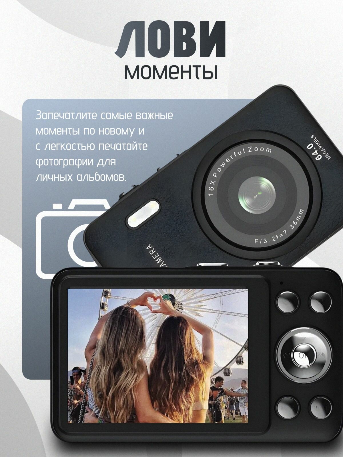 10 цен на Фотоаппарат компактный цифровой Yart 64 МП черный