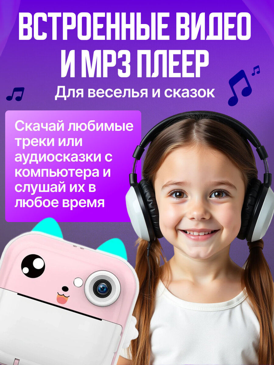 Детский фотоаппарат моментальной печати, встроенные игры, MP3 плеер, печать фото с телефона информация: