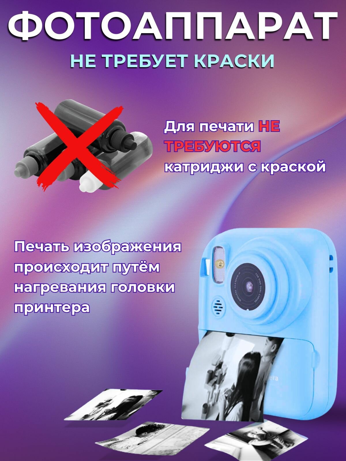 Фотоаппарат детский мгновенной печати (+ карта памяти, бумага, сумочка) голубой информация: