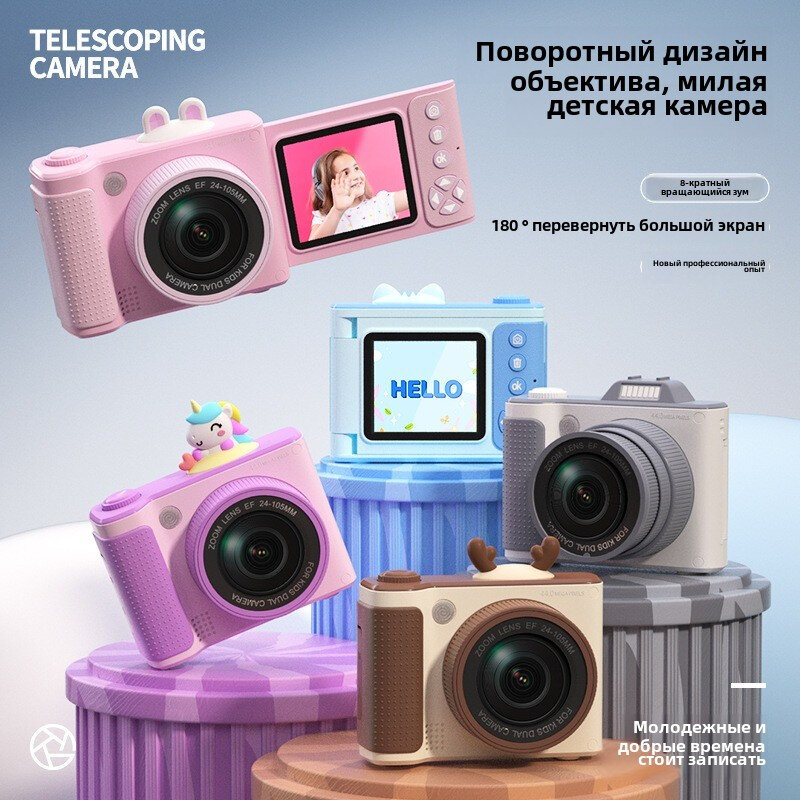 10 цен на Фотоаппарат цифровой детский с экраном 180°, фильтрами, мыльница, зум, трипод, камера для детей 32ГБ