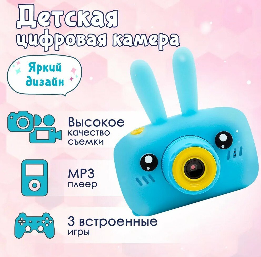 Детский цифровой фотоаппарат Зайчик голубой информация: