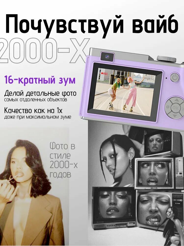 10 цен на Компактный фотоаппарат, 64 Мп, ручная установка баланса белого, фиолетовый/черный матовый