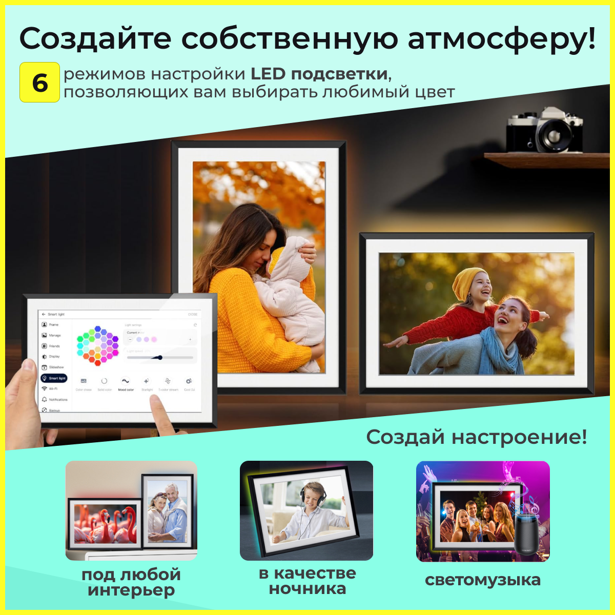 Цифровая фоторамка с LED подсветкой 10`1 сенсорная с Wi Fi информация: