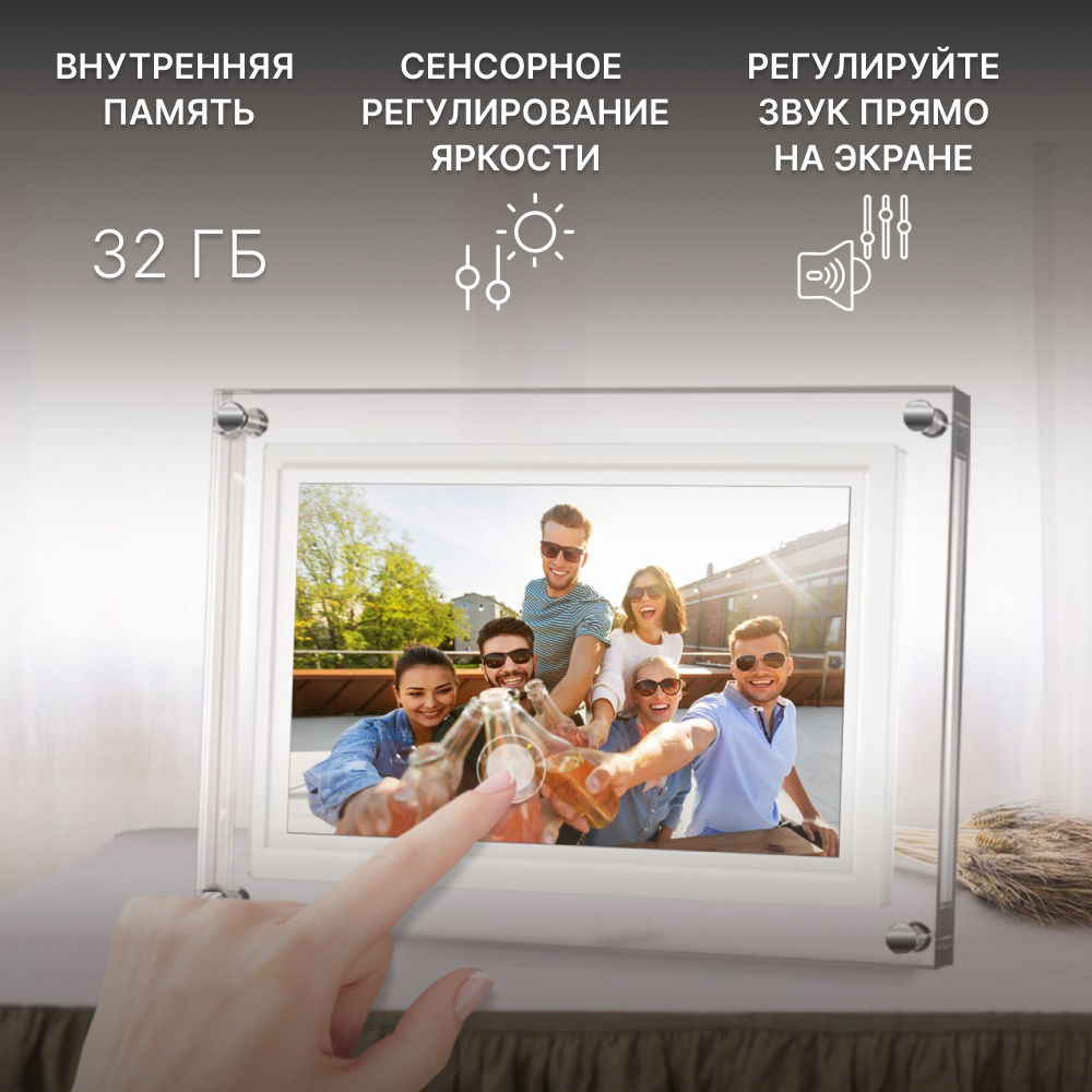 Цифровая фоторамка 7 дюймов акриловая с WiFi, электронная с флешкой для фото и видео 10 904 ₽