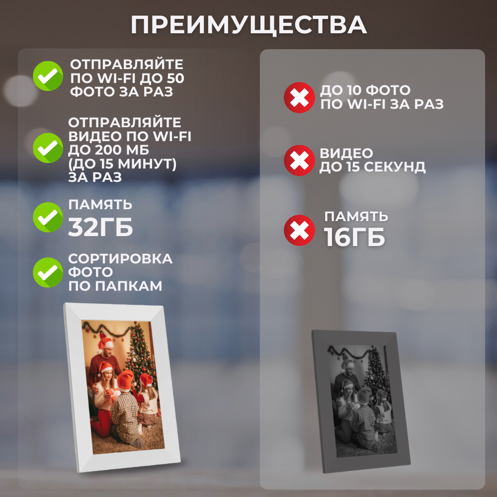 Мы выбрали 10 лучших цен на Цифровая фоторамка 7 дюймов акриловая с WiFi, электронная с флешкой для фото и видео. Перед тем как купить Цифровая фоторамка 7 дюймов акриловая с WiFi, электронная с флешкой для фото и видео посмотрите найденные предложения из Яндекс Маркета и других сайтов на основе XML фидов.