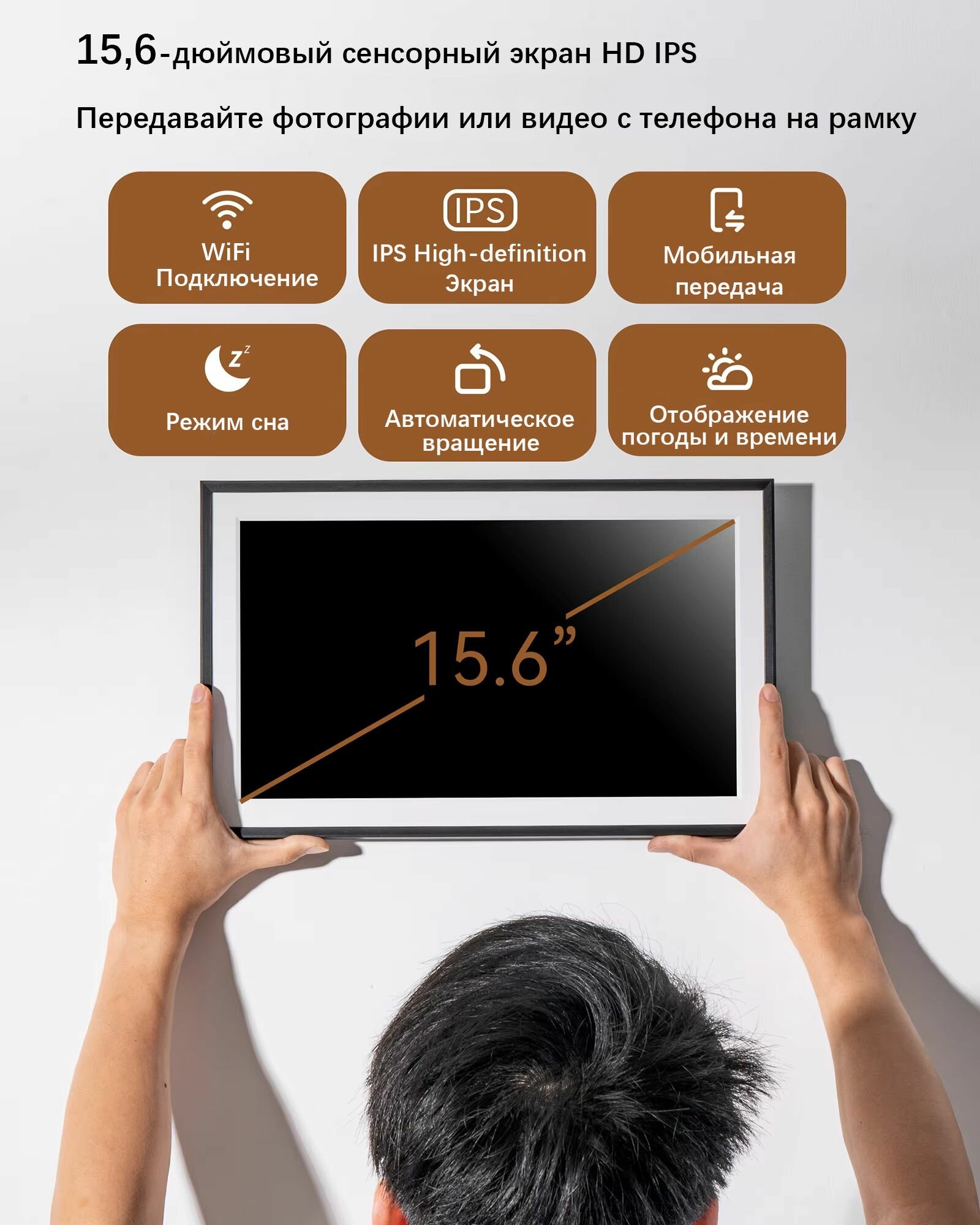 Фоторамка Frameo, 15.6", Wi-Fi, сенсорная, с кронштейном, 32ГБ, чёрно-белая информация:
