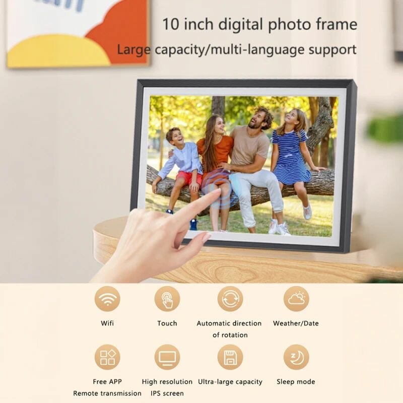 Цифровая/электронная фоторамка 10 дюймов с Wi-Fi и сенсорным экраном, с приложением FRAMEO, для фото, рисунков, аудио и видео информация:
