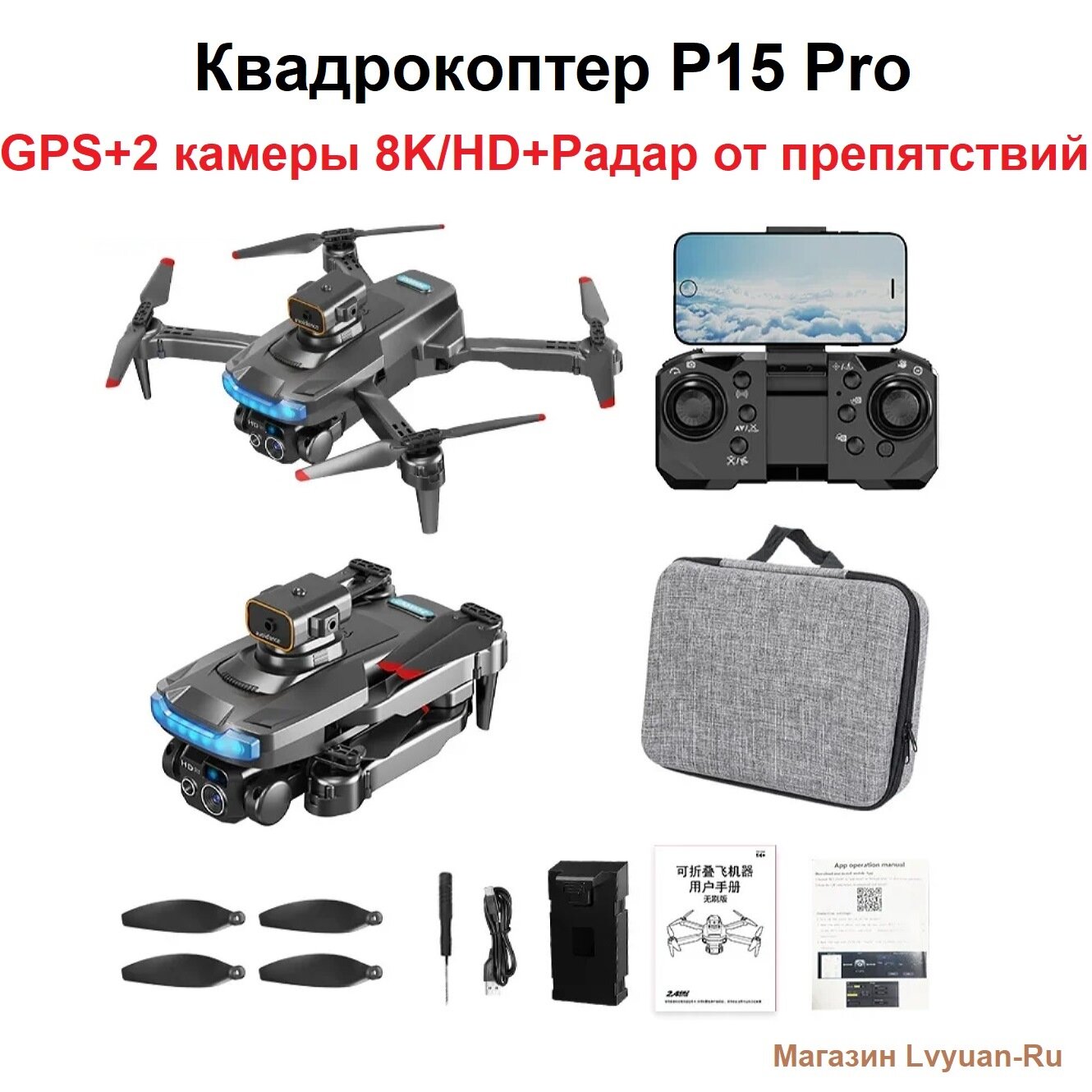 Квадрокоптер P15-Pro, с радаром от препятствий, GPS Wi-Fi дрон 2мя камерами 8K/HD до 3км информация: