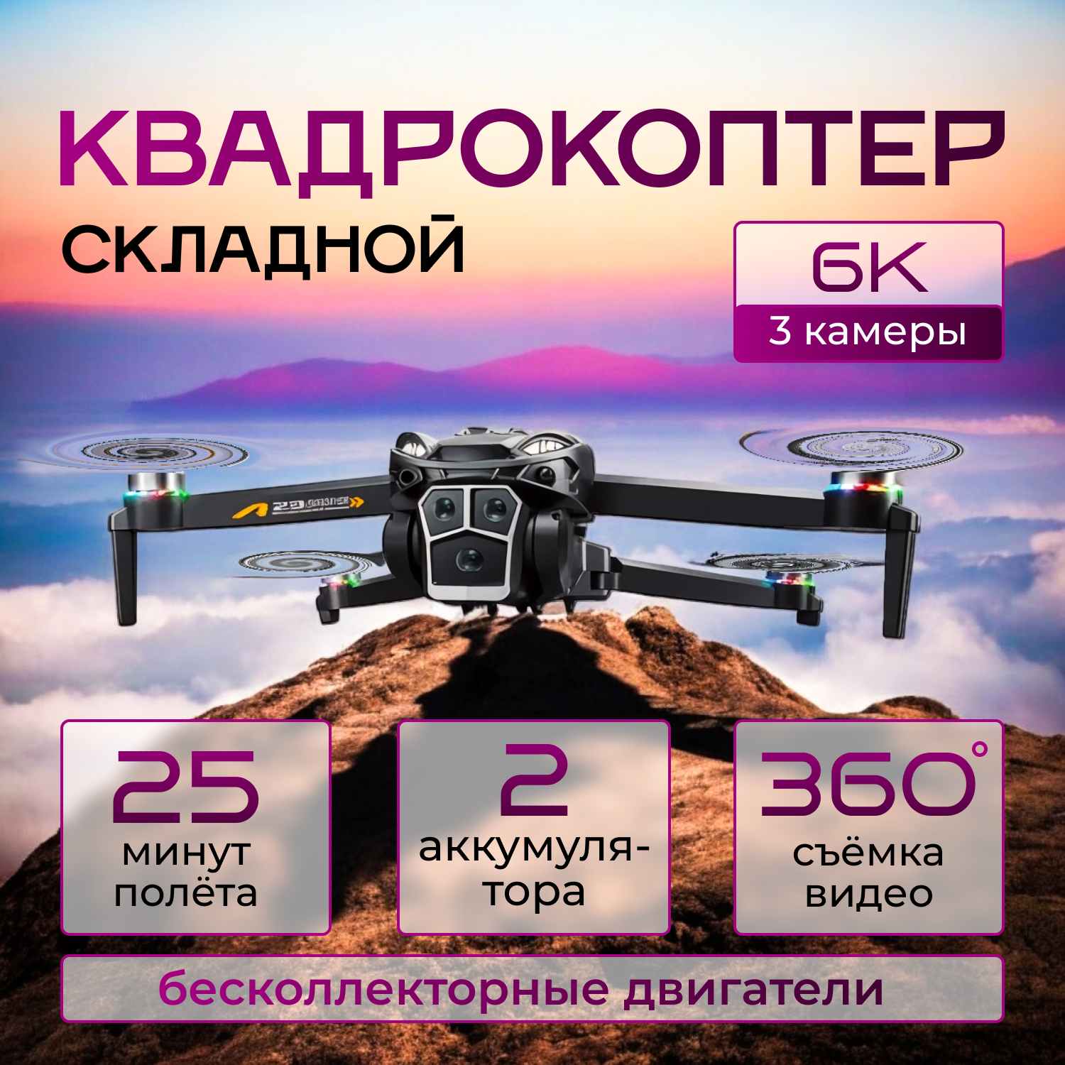 Квадрокоптер A23 pro c камерой, безщеточные моторы, 2 аккумулятора информация: