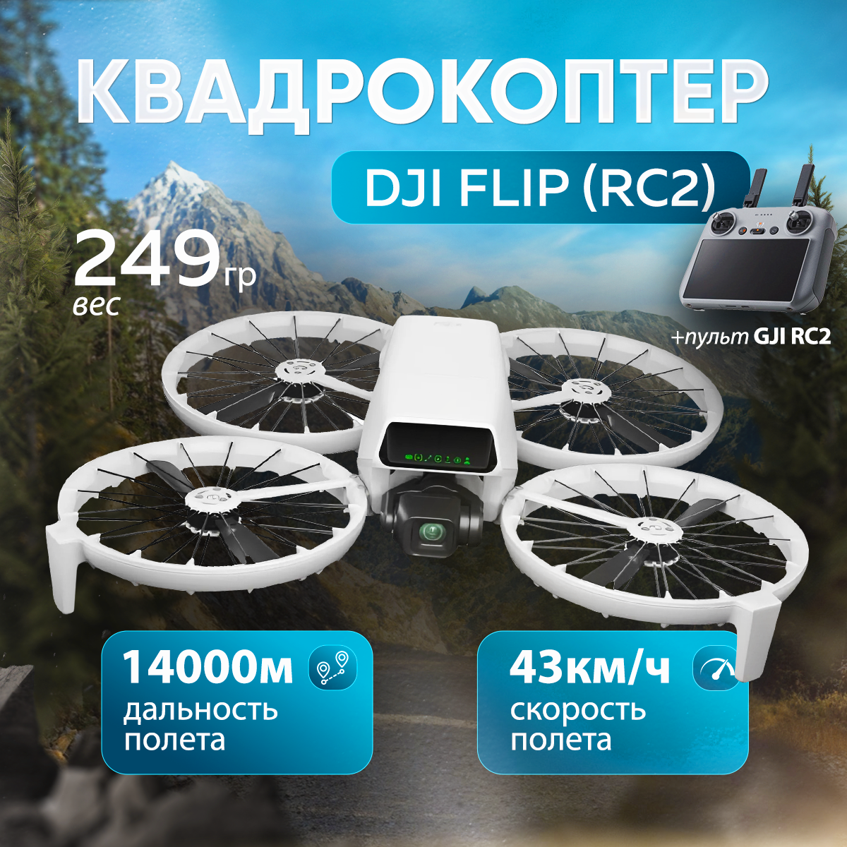 Квадрокоптер DJI FLIP RC2, с пультом, дальность полета до 14 км информация: