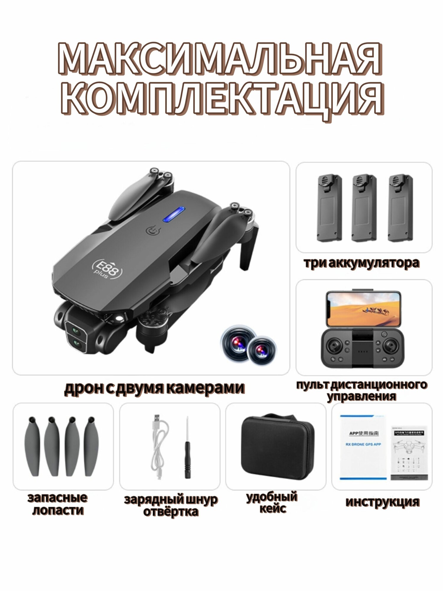 10 цен на Квадрокоптер E88Plus 2 камеры, три аккумулятора, с электронным управлением камерой