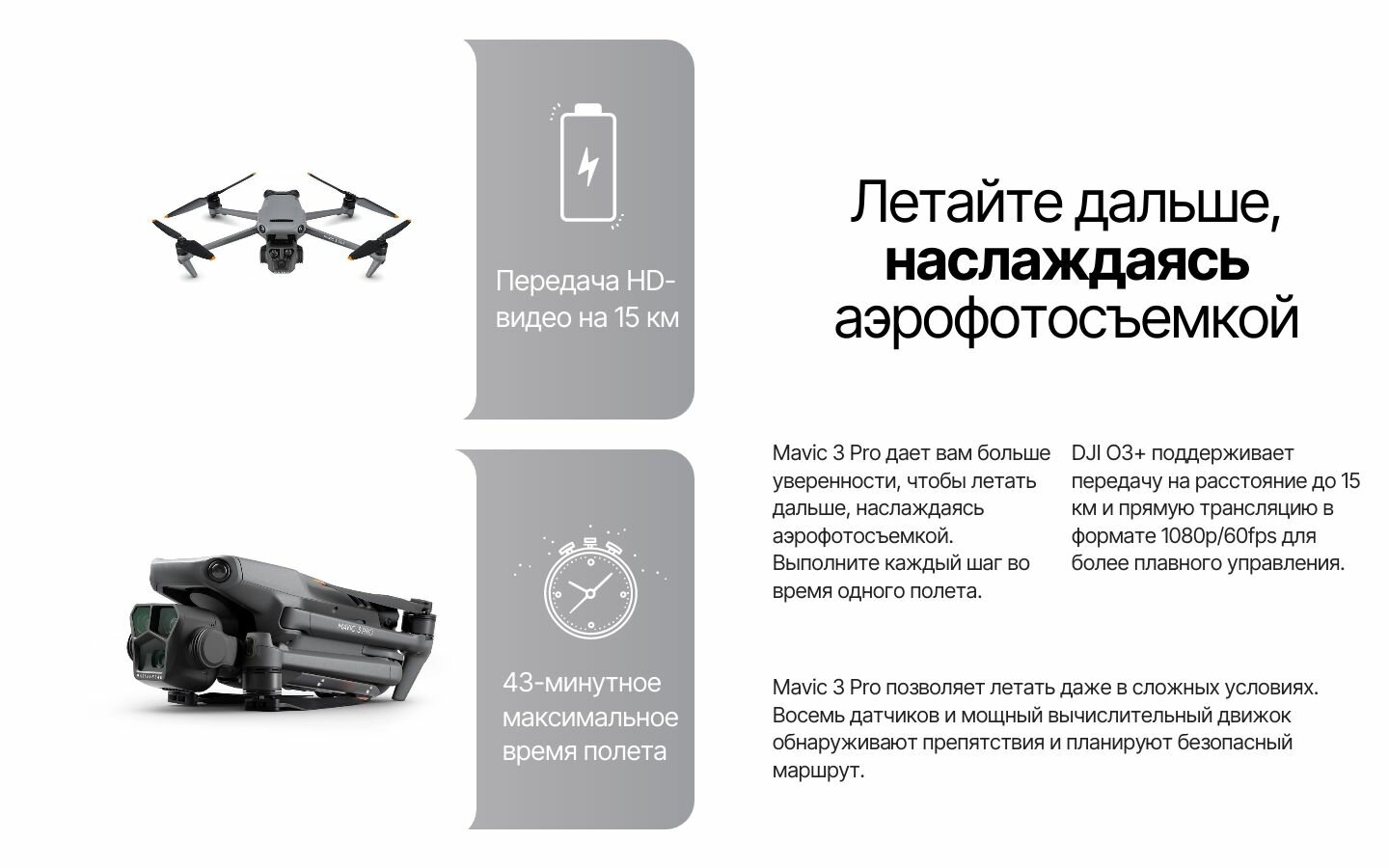 Характиристики этого товара не найдены!Отзывы на Квадрокоптер DJI Mavic 3 PRO RC Пульт с Экраном Комплект с одной батареей