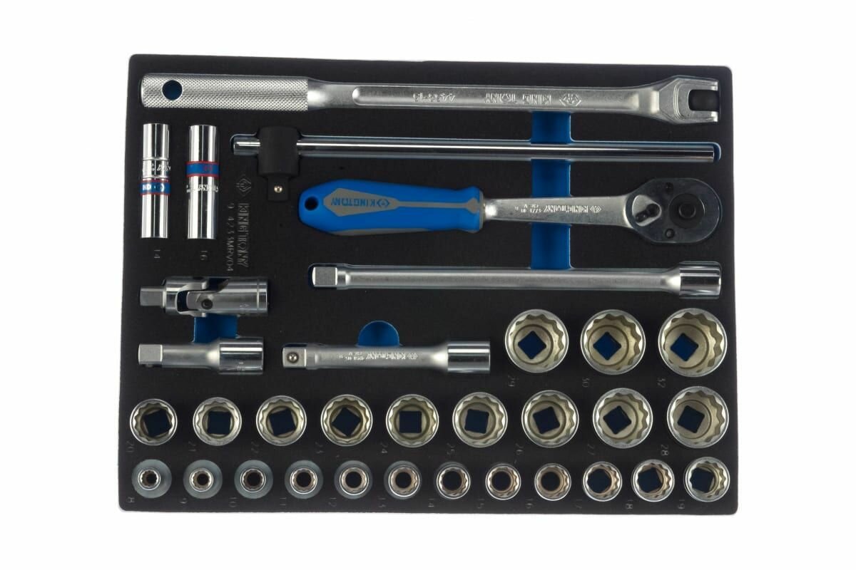 Отзывы на Набор торцевых головок 1/2" с принадлежностями, двенадцатигранные, ложемент, 33 предмета KING TONY 9-4233MRV04