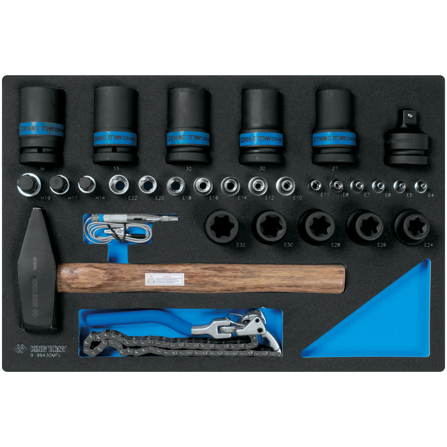 Набор ударных головок 1", головок Torx Е-стандарт, молоток, съемник, тестер, ложемент, 30 предметов KING TONY 9-99430MFV информация: