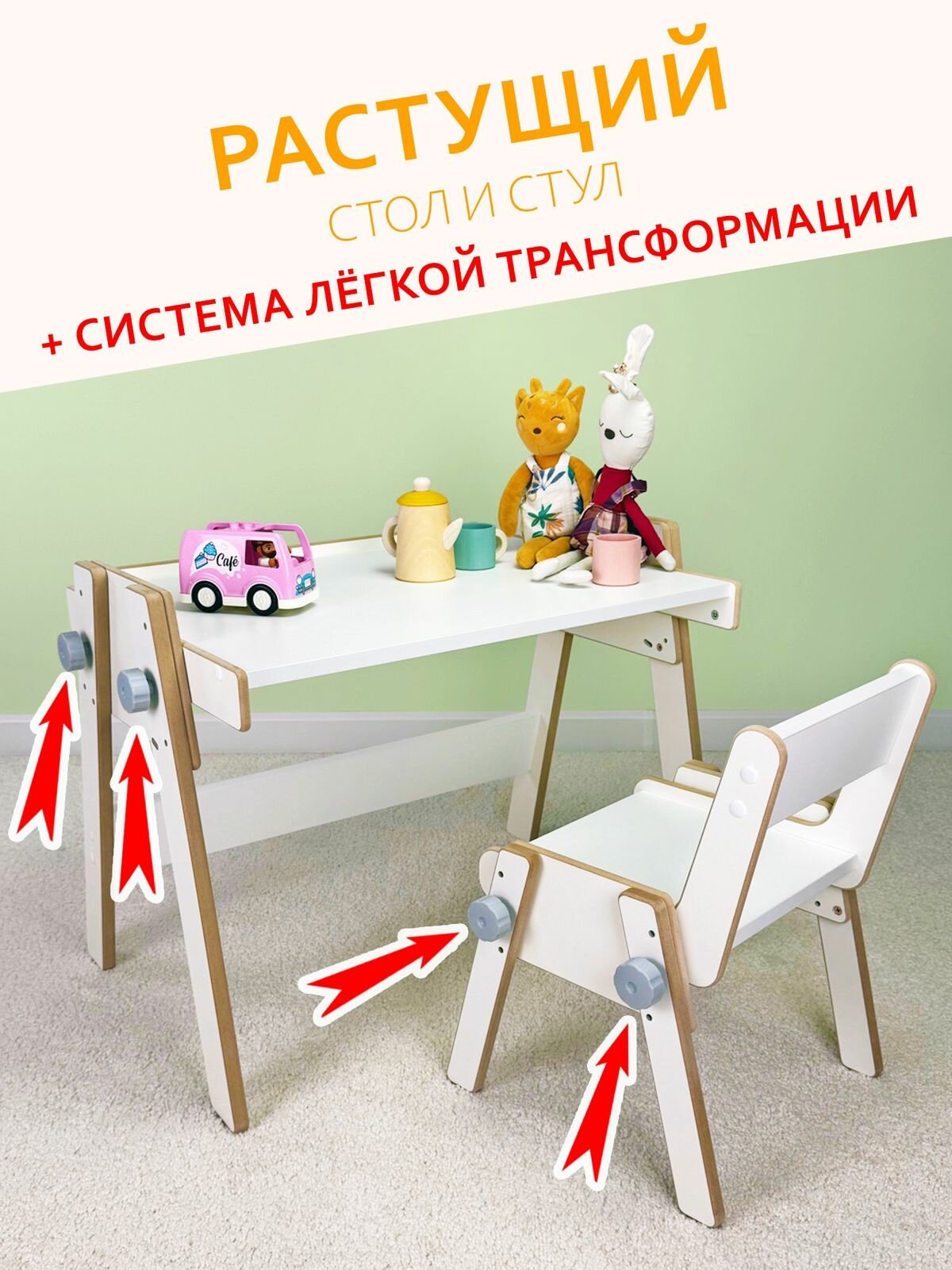 Детский стол-стул DIMDOM Kids "Барашек", растущий, с регулировкой высоты, белый информация: