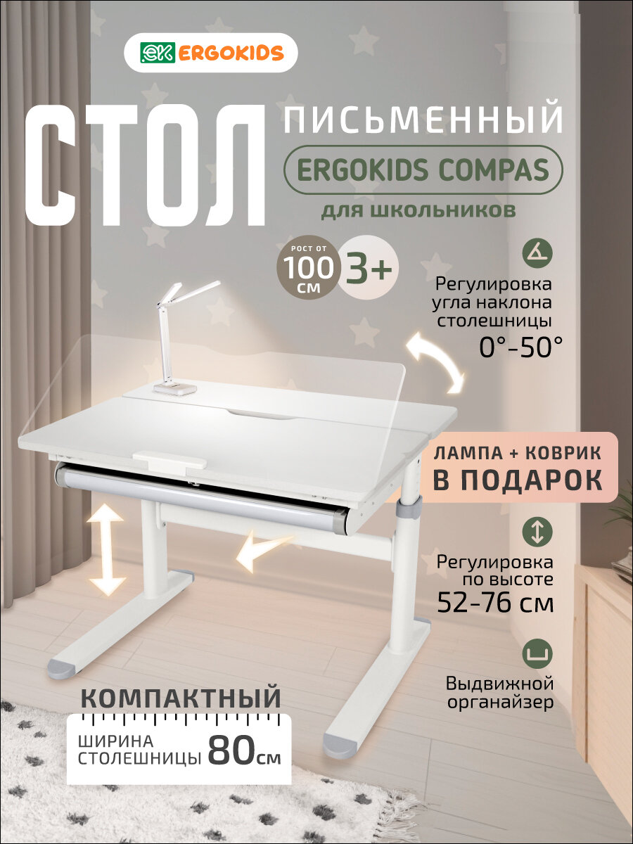 10 цен на Парта для школьника с лампой Compas Lite WG/G (арт. TH-308 Lite WG/G) ширина столешницы 80 см МДФ