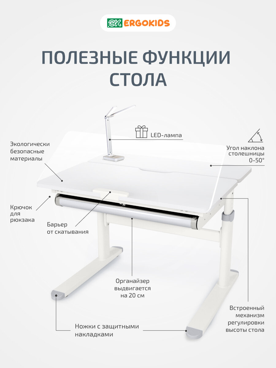 Парта для школьника с лампой Compas Lite WG/G (арт. TH-308 Lite WG/G) ширина столешницы 80 см МДФ информация: