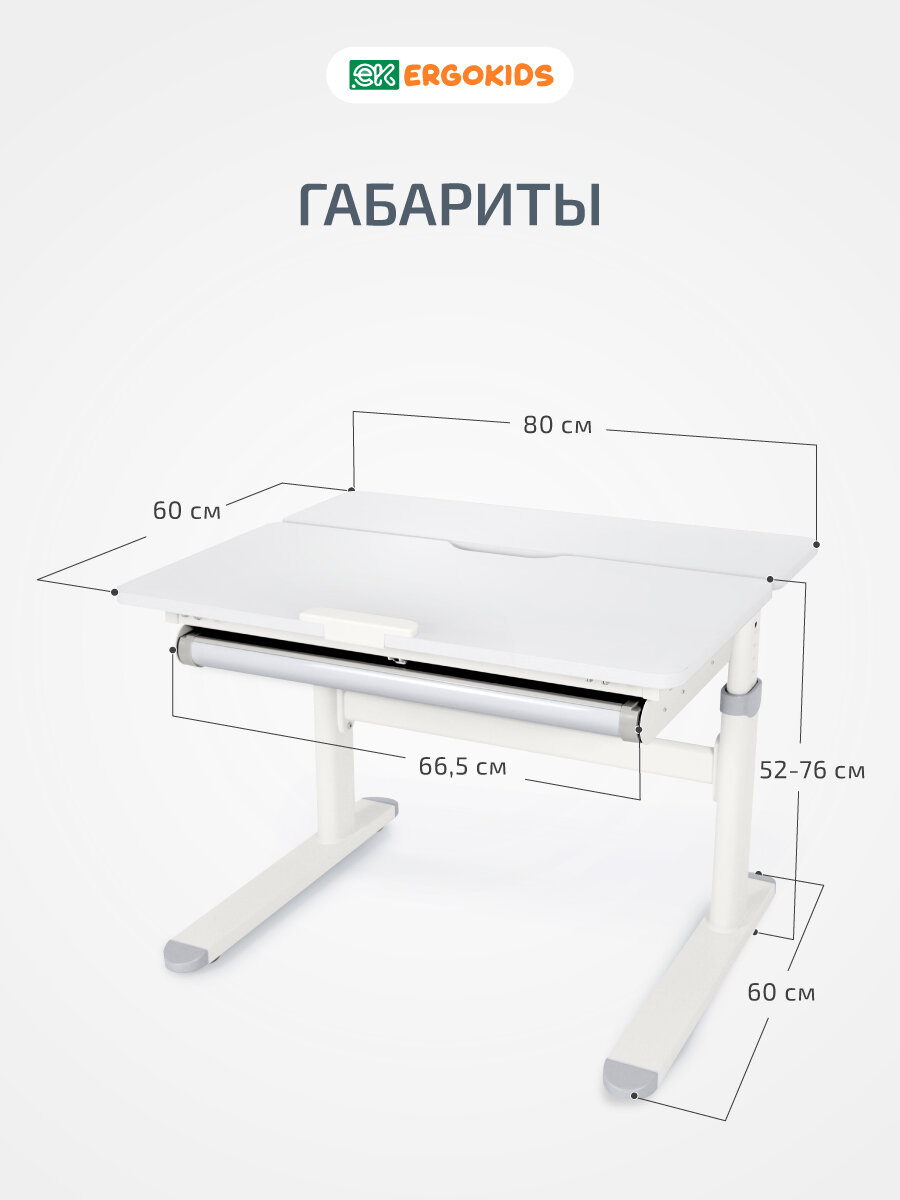Растущая парта для школьника Rumbik Smart серая, детский деревянный письменный стол с регулировкой высоты
