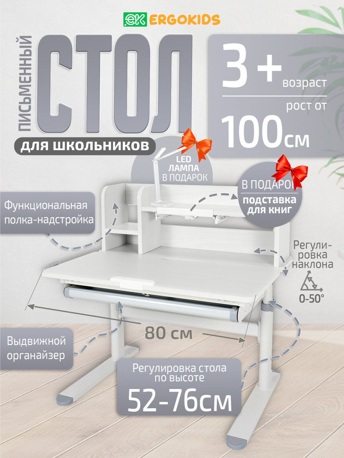 Отзывы на Стол письменный для школьника с лампой Compas Max WG/G (арт. TH-308 Max WG/G) ширина столешницы 80 см МДФ