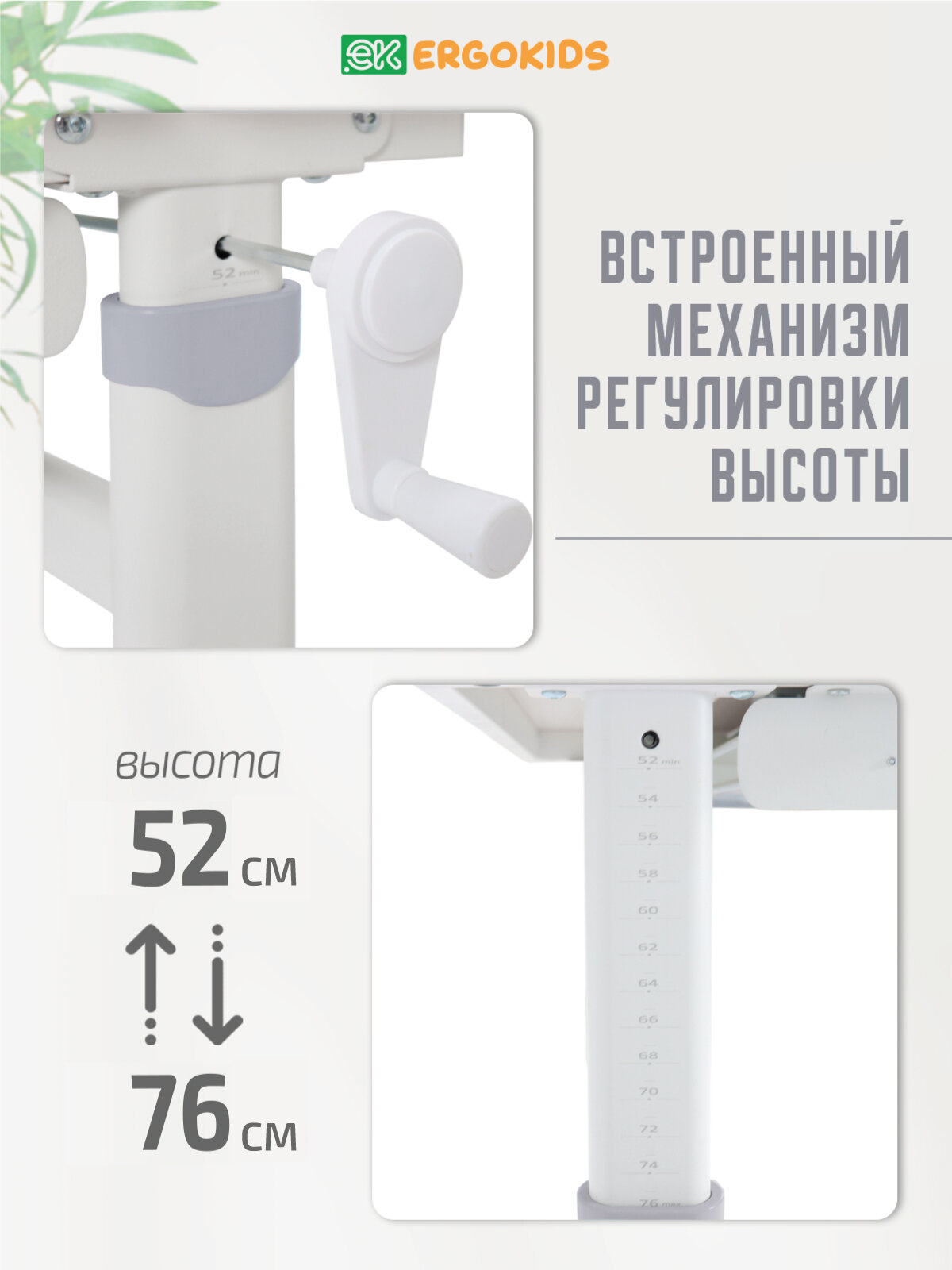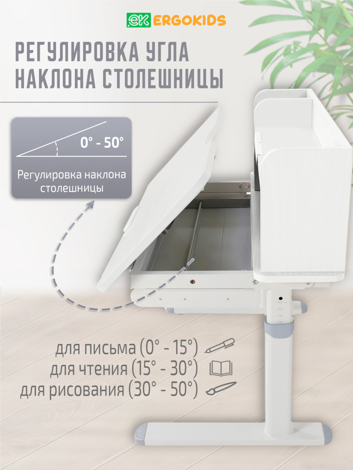 Растущая парта для школьника Rumbik Smart серая, детский деревянный письменный стол с регулировкой высоты
