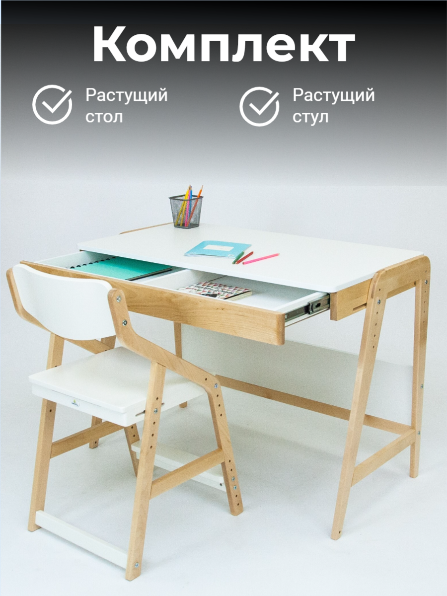 10 цен на Детский растущий стол Вуди и стул Робин Wood (Комбо Белый/Комбо Белый)