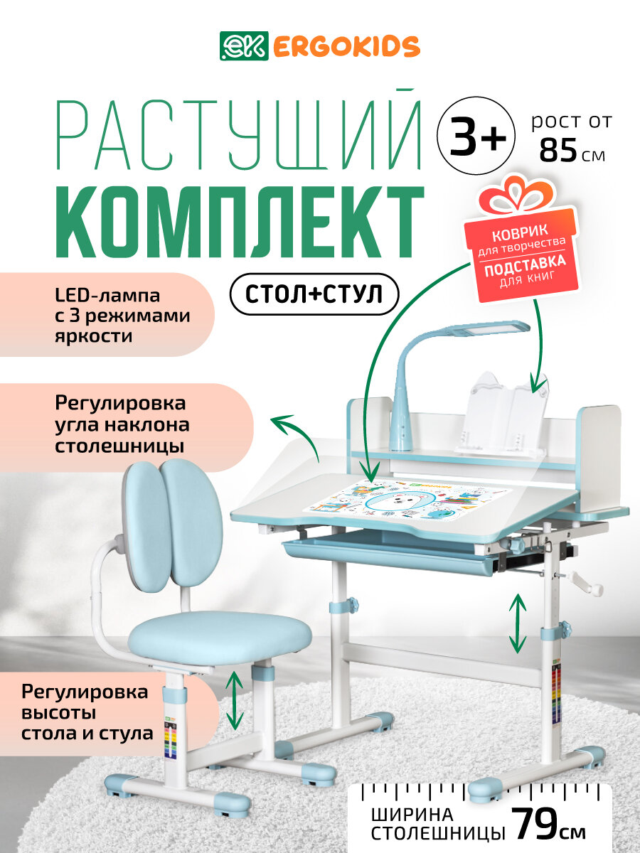 10 цен на Детский растущий комплект для школьников Ergokids Kitty BD-24 голубой с лампой