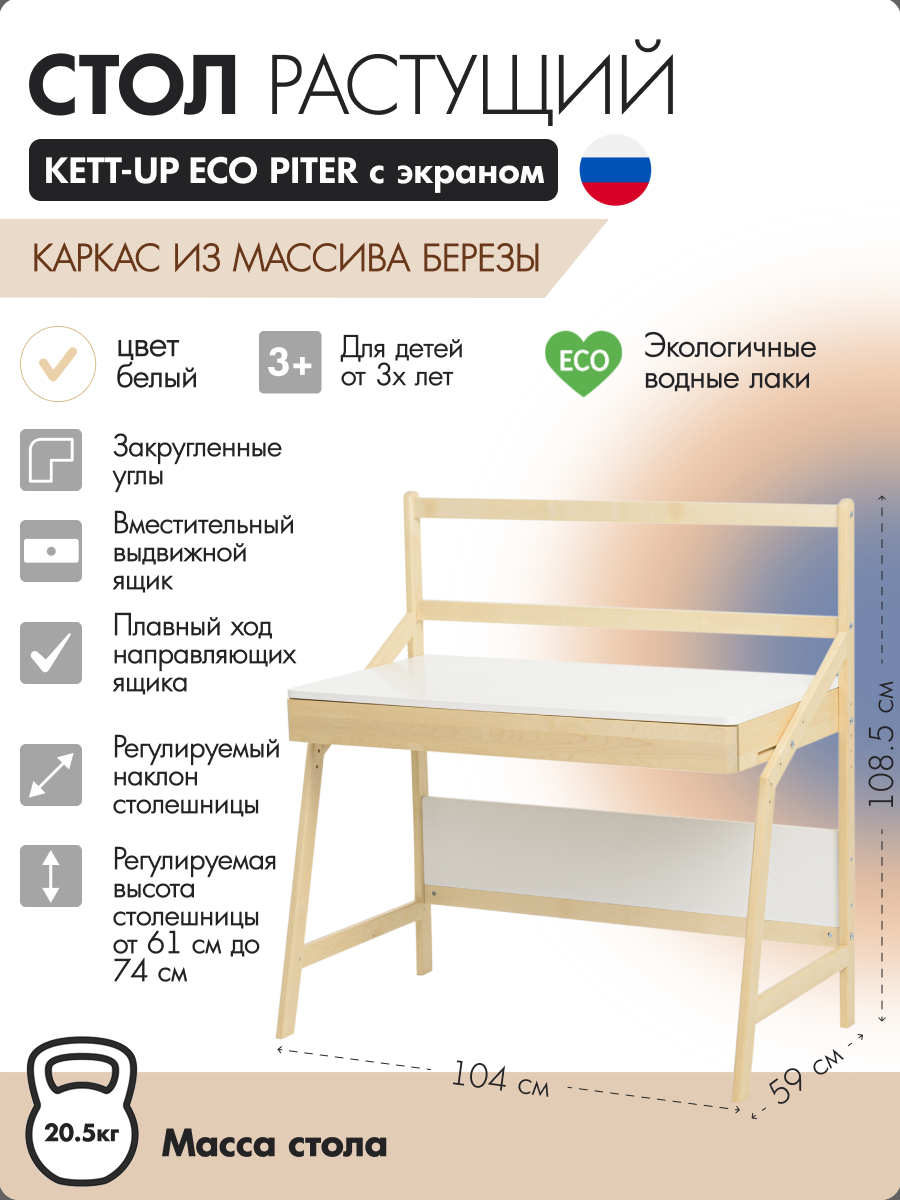Стол растущий KETT-UP ECO PITER с экраном натур / белый информация: