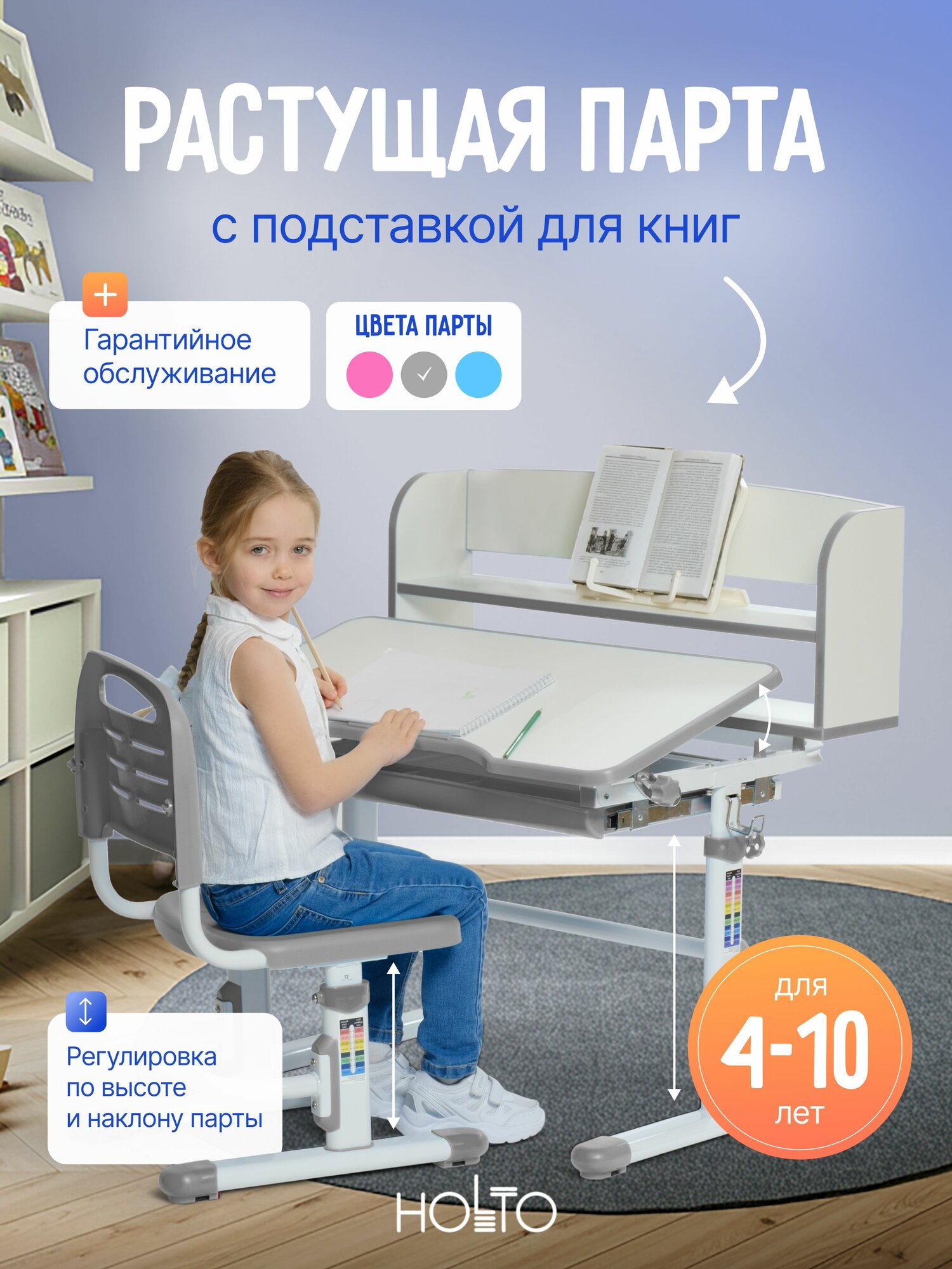 Отзывы на Комплект парта и стул для школьника SET HOLTO-26 с полкой-надстройкой и подставкой для книг