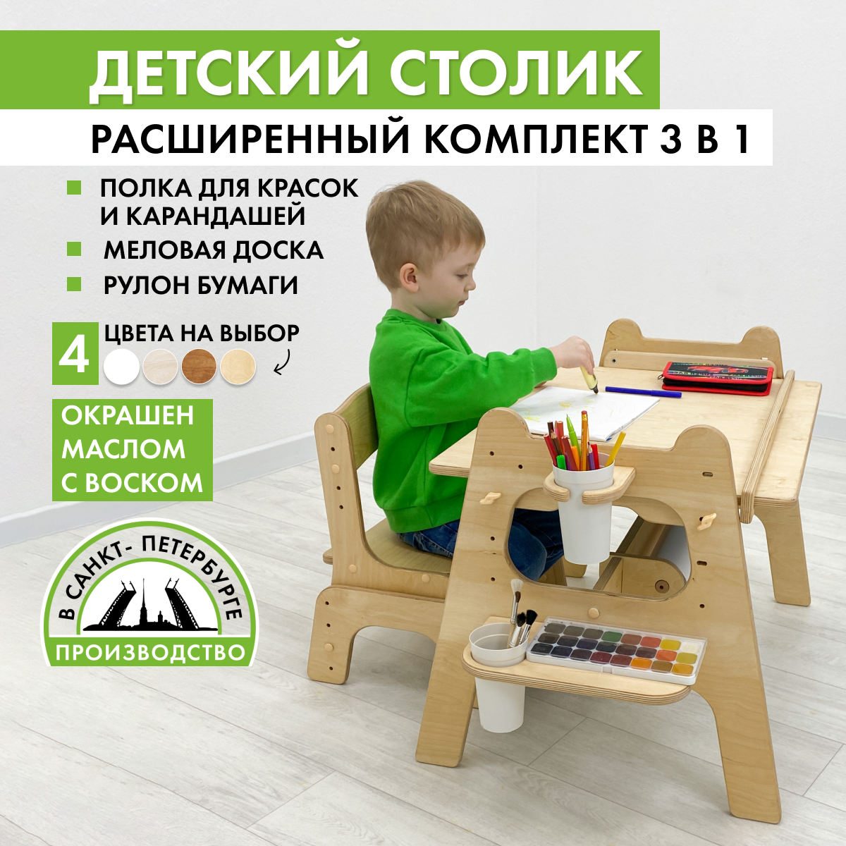 10 цен на Стол детский Малышок - парта трансформер, прозрачное масло