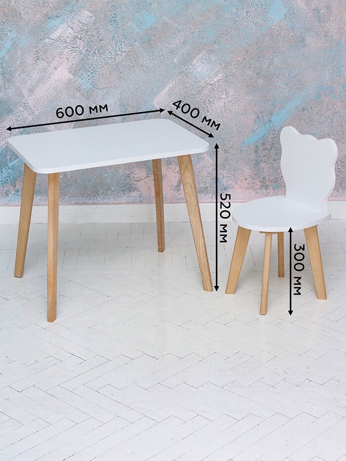 10 цен на Комплект детской мебели «Мишка»: стол и стул, МДФ белый/дерево/ЛДСП