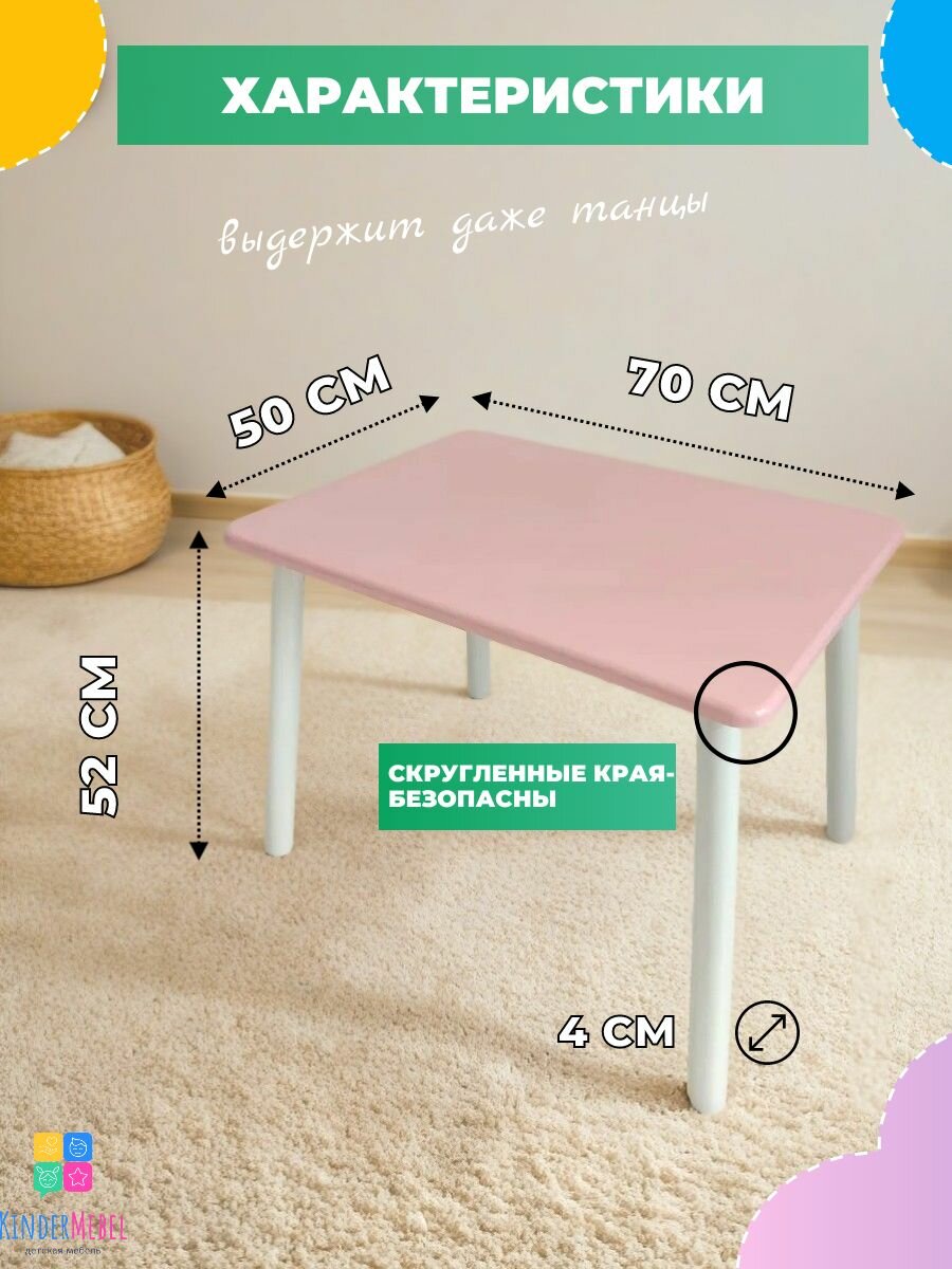 KinderMebel, Стол детский розовый с белыми ножками информация: