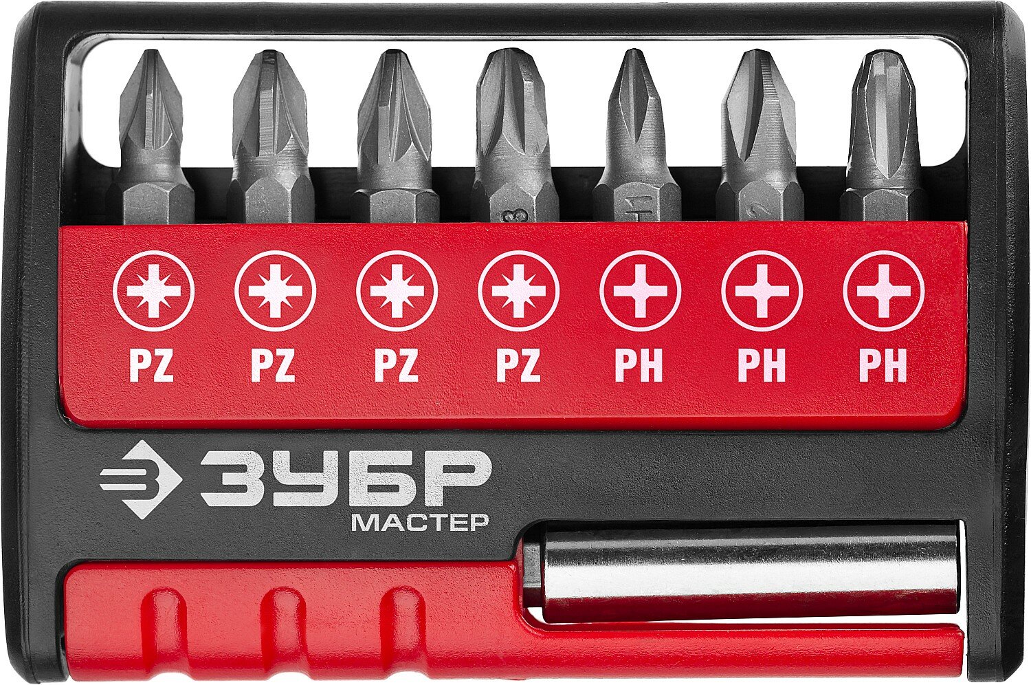 Набор бит Зубр MX, Cr-V 25мм с магнитным держателем, 8 предметов