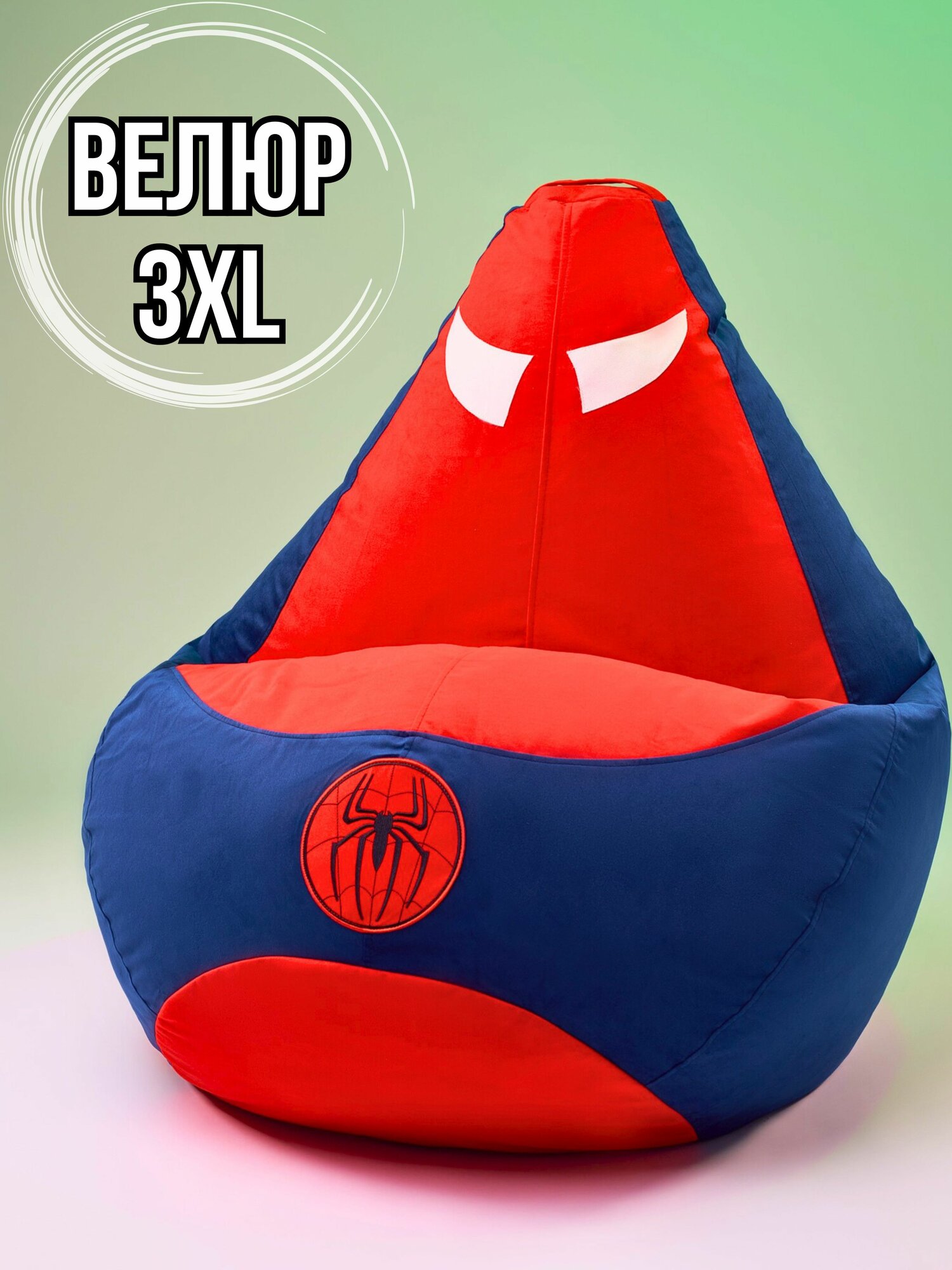 Кресло-мешок игрушка Человек паук супергерой 3XL из мебельного натурального велюра, кресло груша Spider man XXXL информация: