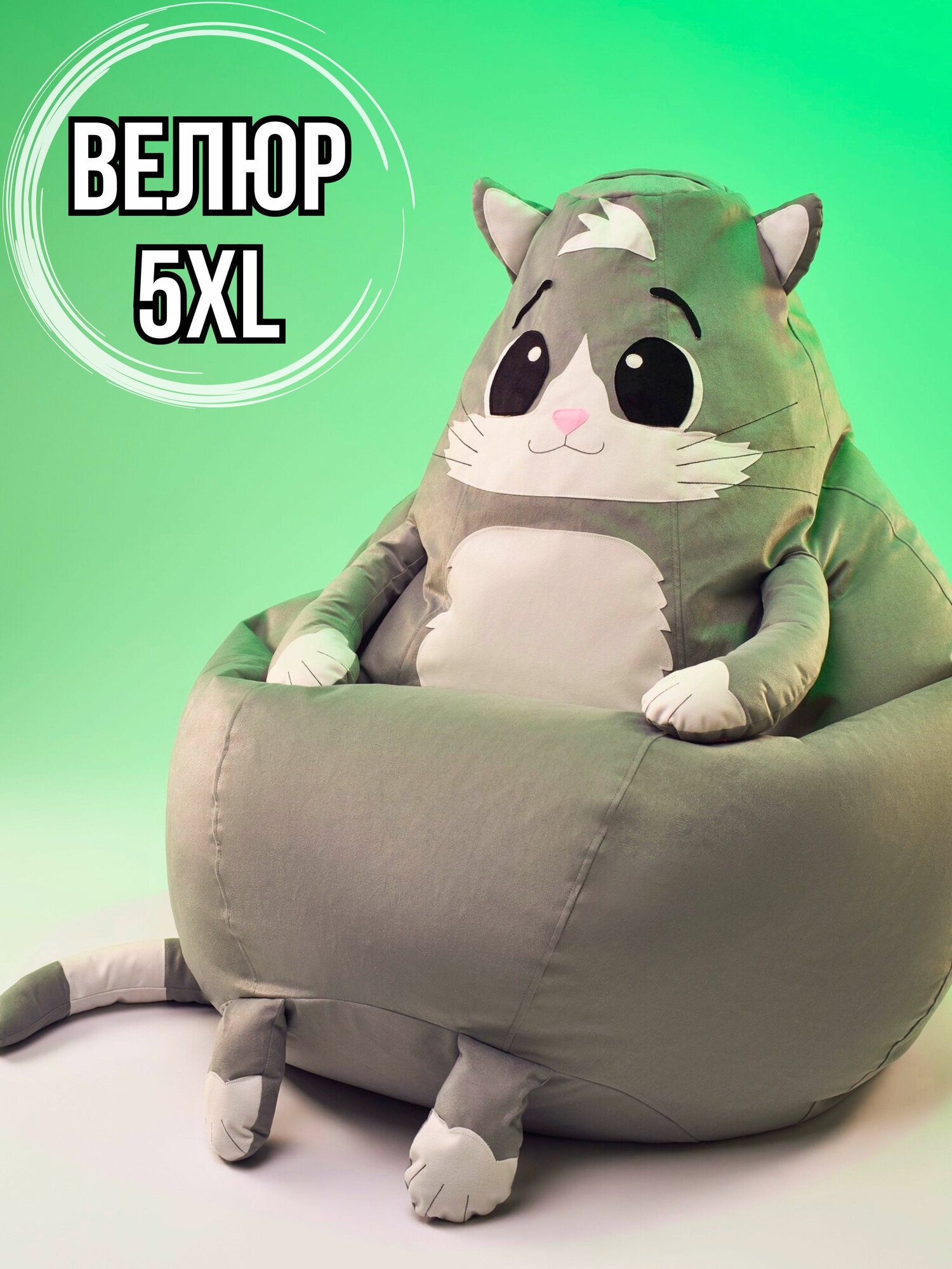 Отзывы на Кресло-мешок игрушка Кот 5XL из мебельного натурального велюра, кресло груша XXXXXL