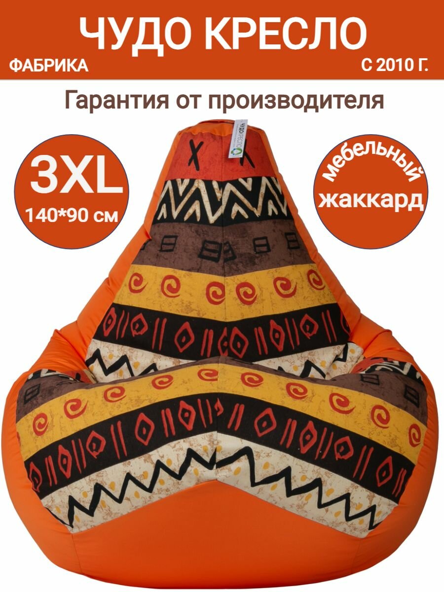 Кресло мешок Груша Африка оранжевый 140х90, размер XXXL, комби велюр информация: