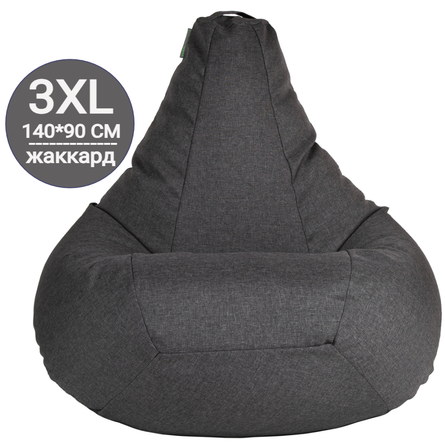 Кресло-мешок груша Жаккард графит 140х90 размер XXXL, Чудо Кресло, ручка, люверс, молния, пуфик мешок информация: