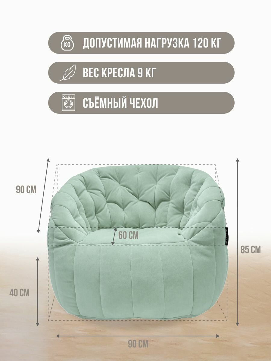 Современное кресло для отдыха aLounge - Tranquility Armchair - Pepper Mint (велюр, мятный) - бескаркасная мягкая мебель в гостиную, спальню, зону ожидания 37 390 ₽