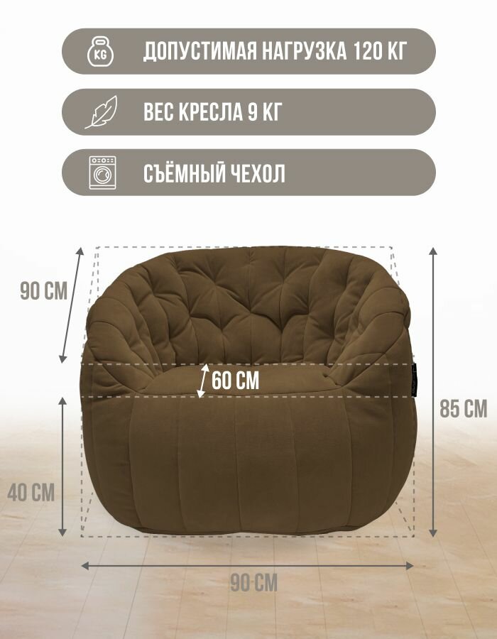 Современное кресло для отдыха aLounge - Tranquility Armchair - Hot Chocolate (велюр, коричневый) - бескаркасная мягкая мебель в гостиную, спальню, зону ожидания 37 390 ₽