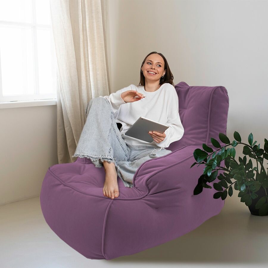 Отзывы на Современное кресло для отдыха aLounge - Tranquility Armchair - Sakura Pink (велюр, фиолетовый) - бескаркасная мягкая мебель в гостиную, спальню, зону ожидания.