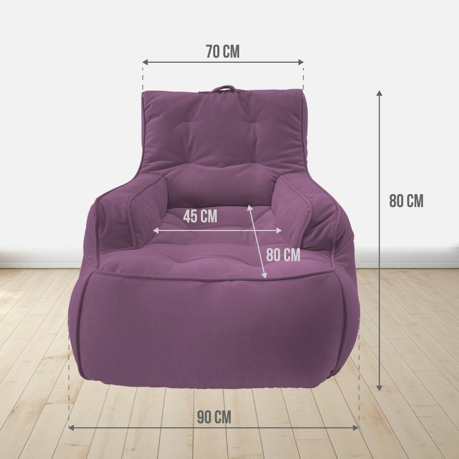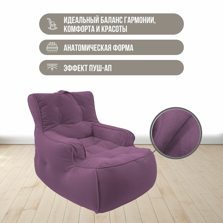 Современное кресло для отдыха aLounge - Tranquility Armchair - Sakura Pink (велюр, фиолетовый) - бескаркасная мягкая мебель в гостиную, спальню, зону ожидания. информация: