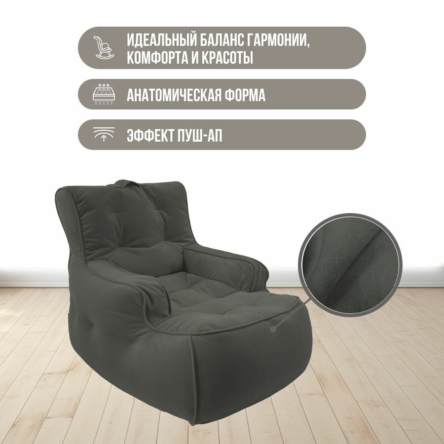 Современное кресло для отдыха aLounge - Tranquility Armchair - Luscious Grey (велюр, темно-серый) - бескаркасная мягкая мебель в гостиную, спальню, зону ожидания 37 390 ₽