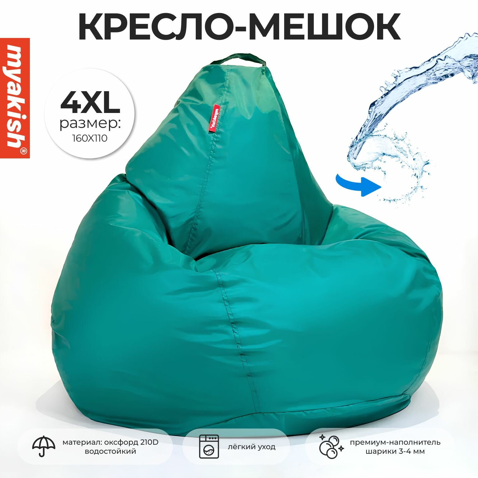 Кресло-мешок Myakish "Оксфорд", форма груши, бирюзовый, XXXL, оксфорд 4 700 ₽