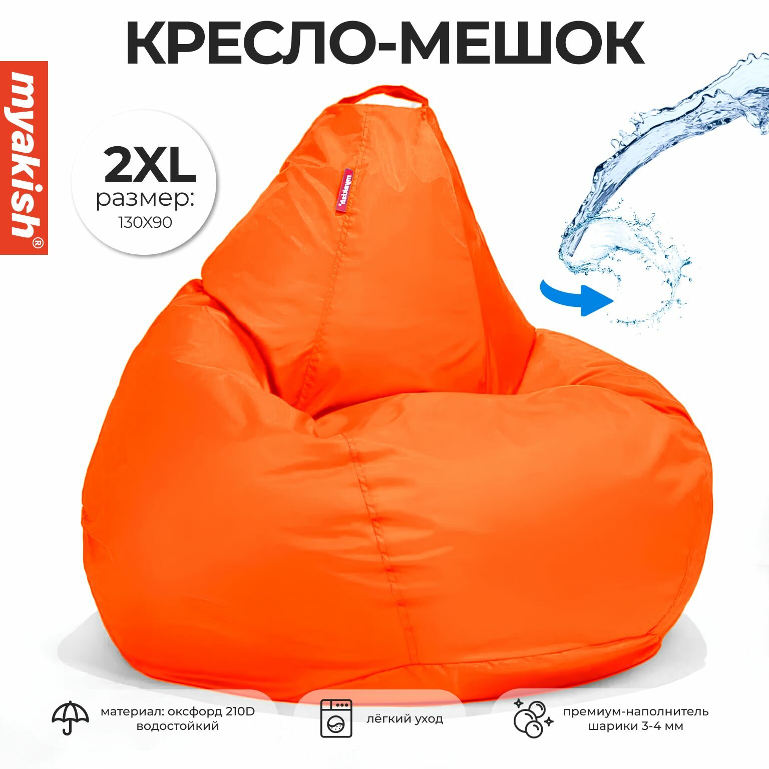 Кресло-мешок груша "Оксфорд" Оранжевый 2XL Myakish информация: