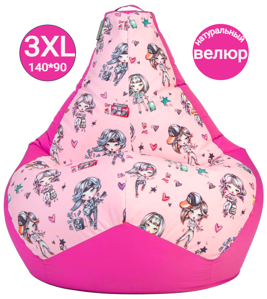 Отзывы на Кресло-Мешок груша Герлс розовый 140х90 размер XXXL, Чудо Кресло, Велюр Оксфорд, ручка, люверс, молния, пуф для девочек