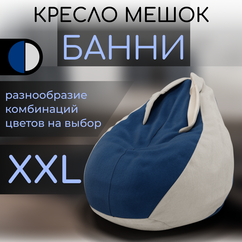 Кресло-мешок YORCOM "Банни", синий-белый . велютта 26- 01 размер XXL, для детской и гостиной информация: