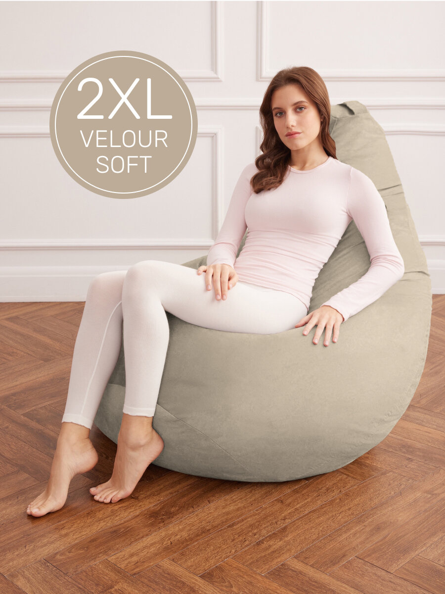 10 цен на Кресло мешок Laavi Home кресло груша, размер ХXL, мебельный велюр, латте