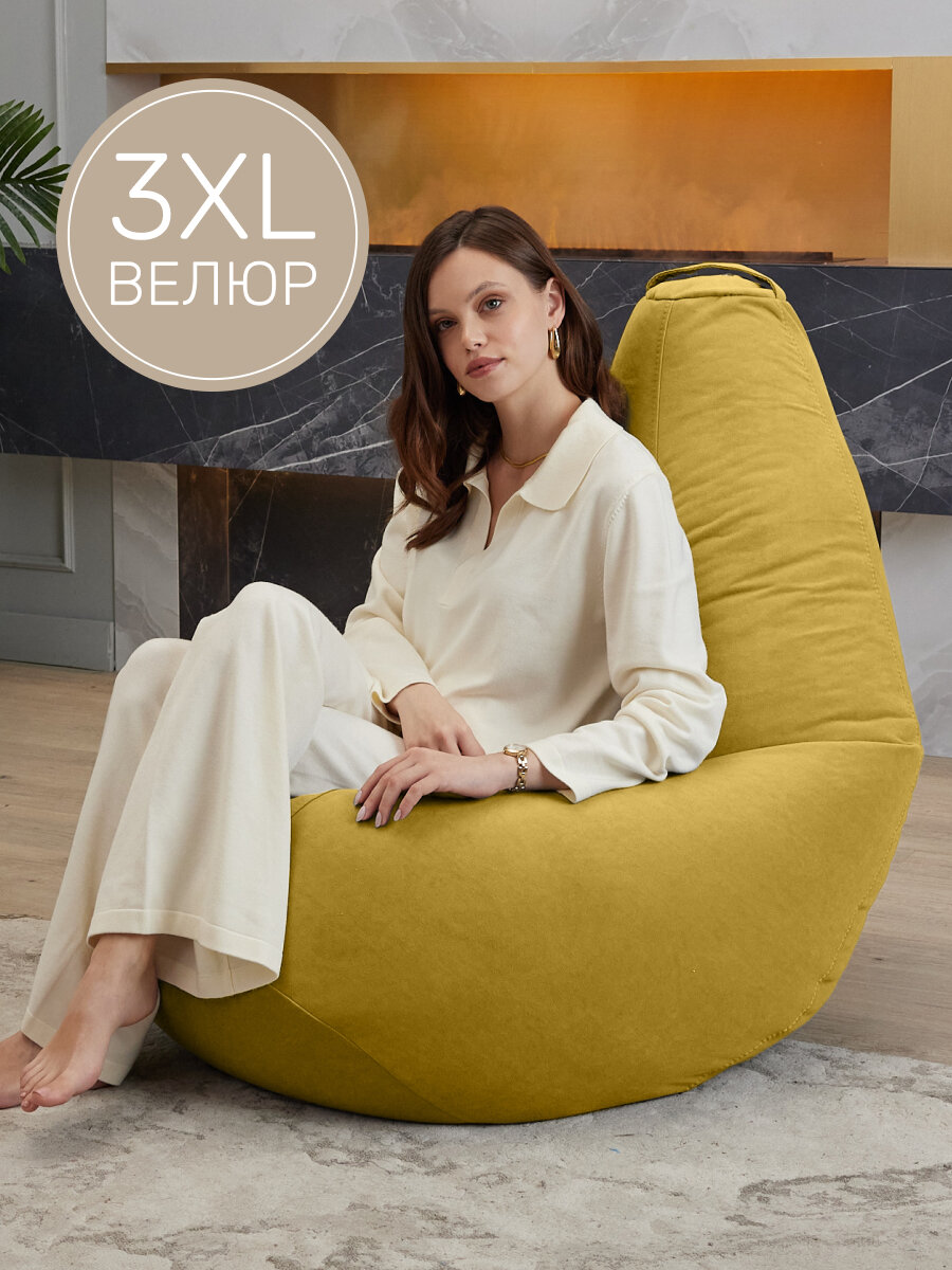 10 цен на Кресло мешок Laavi Home кресло груша, размер ХXXL, мебельный велюр, горчичный