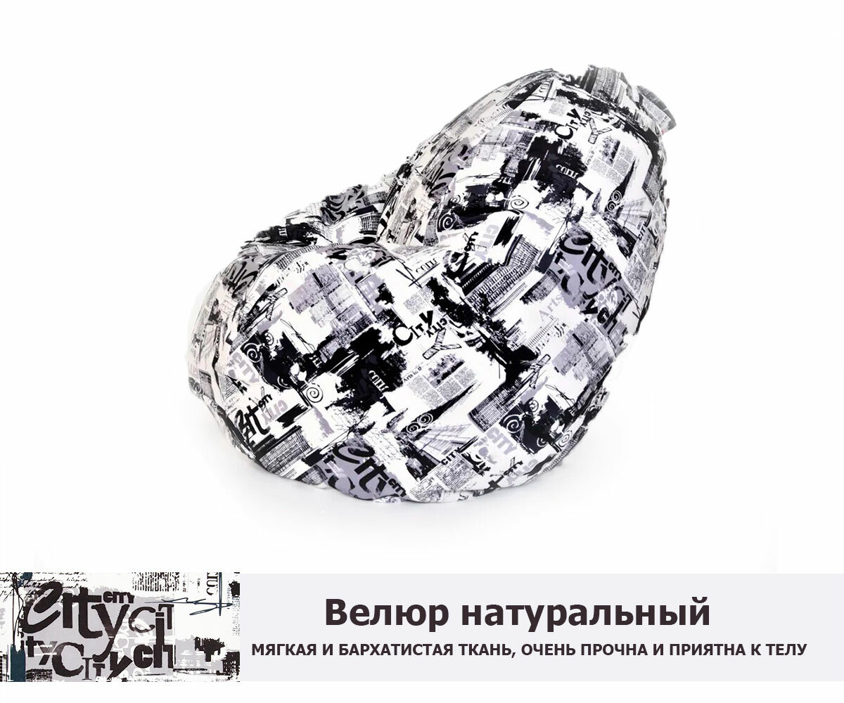 Кресло-мешок игровое WOWPUFF "Макси" XXXXXL, велюр, съемный чехол, черный/белый информация:
